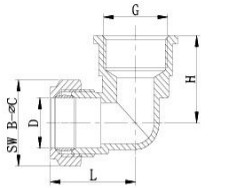 Hem / Produkt / Beslagserie / 90 graders armbågsrörkoppling i mässing AMT-1503